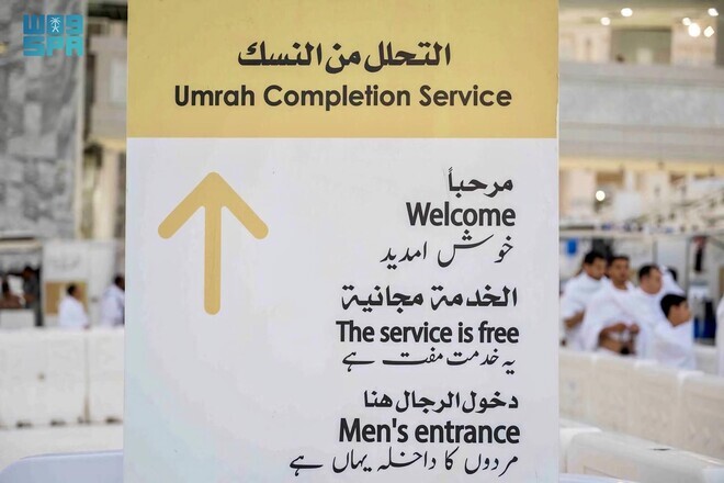 مسجد الحرام کے بیرونی صحنوں میں عمرہ زائرین کی سہولت کے لیے مفت بال ترشوانے کا خصوصی اہتمام کیا گیا ہے۔