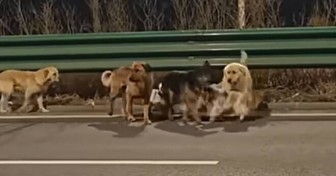یہ کتے رات کے وقت اس وقت لوگوں کی نظر میں آئے جب وہ چینگ شوانگ ایکسپریس ہائی وے پر رات کے وقت ایک منظم گروہ کی طرح چل رہے تھے۔