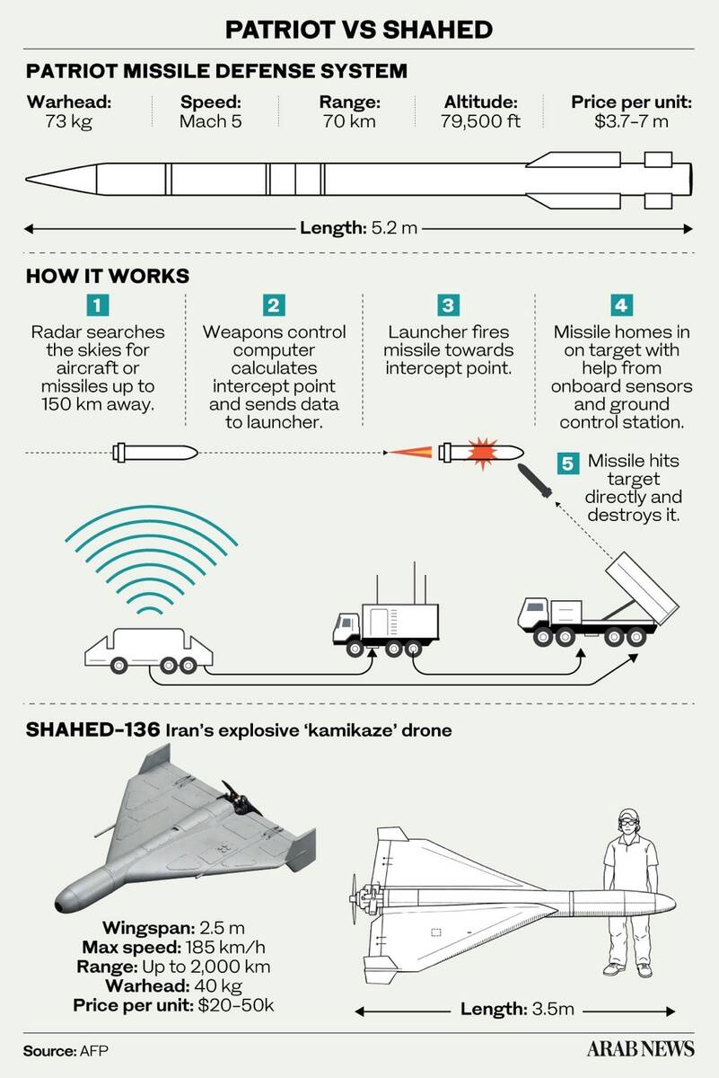 ایک ڈرون کو روکنے کے لیے لاک ہیڈ مارٹن پیٹریاٹ پی اے سی تھری میزائل کی ضرورت ہو سکتی ہے جس کی لاگت 40 لاکھ امریکی ڈالر سے زیادہ ہے۔