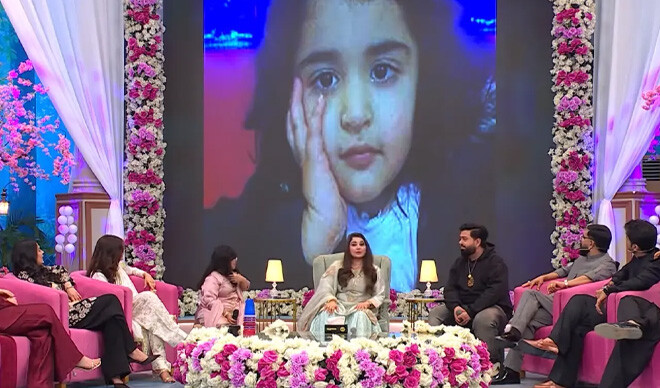 جویریہ سعود نے اپنے عید شو کے سیگمنٹ میں ایک تصویر کو یمنیٰ زیدی کے بچپن سے منسوب کیا تھا۔ (فوٹو: ایکسپریس انٹرٹینمنٹ)