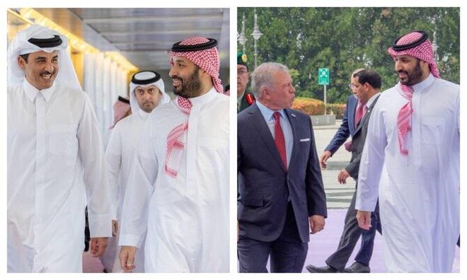 امیر قطر اور اردن کے فرمانروا جدہ پہنچ گئے، سعودی ولی عہد نے خیرمقدم کیا پیر 30 مارچ 2026 17:22 اردن کے فرمانروا شاہ عبداللہ دوم اور امیر قطر شیخ تمیم بن حمد آل ثانی پیر کو مملکت کے سرکاری دورے پر جدہ پہینچ گئے۔ ایس پی اے کے مطابق جدہ کے کنگ عبدالعزیز انٹرنیشنل ایئرپورٹ پر ولی عہد شہزادہ محمد بن سلمان نے خیرمقدم کیا۔ سعودی ولی عہد امیر قطر شاہ اردن جدہ اردونیوز UrduNews شیئر: واپس اوپر جائیں