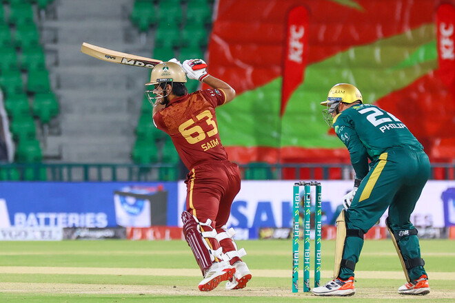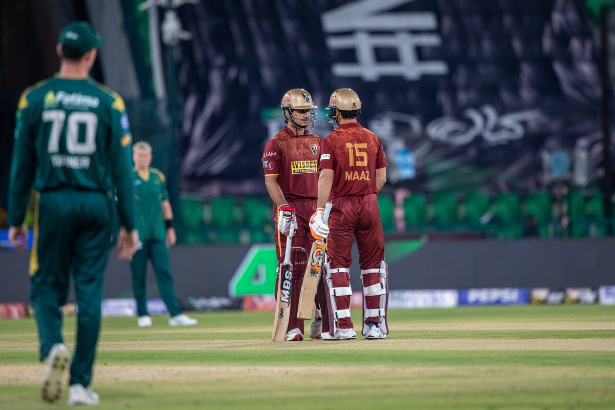 صائم ایوب اور معاذ صداقت نے کنگزمین کو پانچ اوور میں 59 رنز کی اچھی اوپننگ شراکت فراہم کی۔ (فوٹو: پی ایس ایل ایکس)