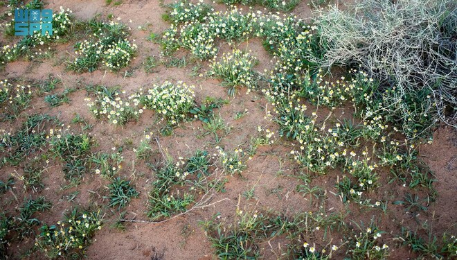 سعودی عرب کے مختلف علاقوں میں بہار کے موسم کی آمد کے ساتھ اپنی قدرتی خوبصورتی اور رنگوں کے تنوع کے ساتھ جنگلی پودا اقحوان ’گل داؤدی‘ صحرائی ماحول کو منفرد جمالیاتی رنگ دے رہا ہے۔