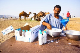 صحرائی علاقوں میں لگائے گئے کیمپوں میں آنے والے مہمانوں کی تواضع بھی خالص اور تازہ اونٹنی کے دودھ سے کی جاتی ہے۔