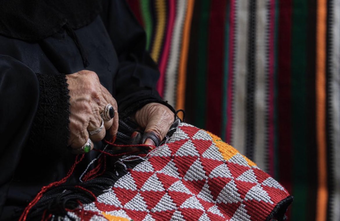 اہل بادیہ کی دستکاری کی ماہر خاتون کاریگر نے پراعتماد مسکراہٹ کے ساتھ اپنی ابتدائی زندگی کو یاد کرتے ہوئے کہا کہ ’ بچپن کا بیشتر وقت والدہ کے ساتھ گزار، جو میری پہلی درس گاہ تھی۔‘