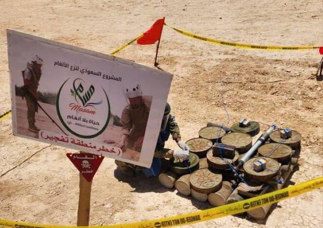 سعودی عرب، اپنے انسانی ہمدری کے ونگ شاہ سلمان مرکز کے ذریعے یمنی علاقوں میں بارودی سرنگوں کو صاف کرنے کی کوششیں جاری رکھے ہوئے ہے۔ یہ منصوبہ شہریوں کی سیفٹی کے ساتھ یمنی شہریوں کو محفوظ اور با وقار ماحول میں رہنے کے قابل بناتا ہے۔
