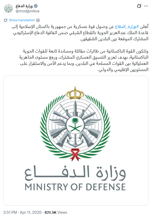 پاکستانی فوج کا دستہ کنگ عبدالعزیز ایئر بیس پہنچ گیا ہے: سعودی وزارت دفاع