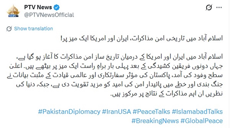 پاکستان کے سرکاری ٹی وی کے مطابق دارالحکومت اسلام آباد میں ایران اور امریکہ کے وفود کے درمیان پاکستان کی میزبانی میں مذاکرات کا آغاز ہو گیا ہے۔