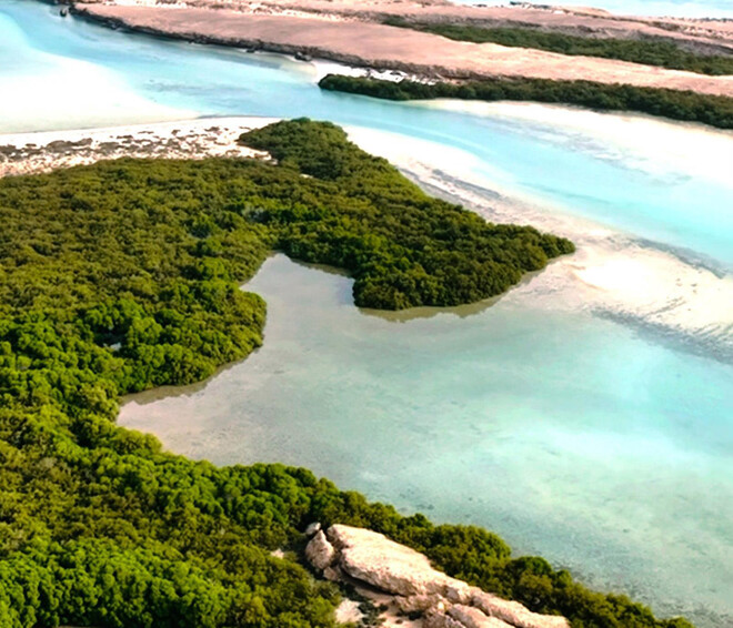 جزیرے پر مینگروو کے درختوں کے گھنے جنگلات ماحولیاتی توازن برقرار رکھنے میں اہم کردار ادا کرتے ہیں۔