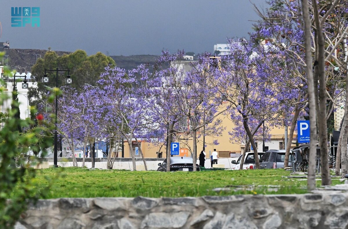 سعودی خبررساں ادارے کی جانب سے خوبصورت موسم کی عکاسی کرتے ہوئے مختلف مقامات کی تصاویر کو نمایاں انداز میں پیش کیا ہے جن میں مذکورہ درختوں پر جامنی پھولوں کی بہار نے ماحول کو دلفریب بنا دیا ہے۔