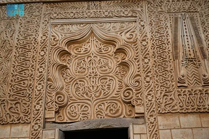 گھر کے اندر ’مجلس‘ (جہاں لوگوں کے بیٹھنے کا انتظام ہوتا ہے) مرکزی سماجی مقام کی حیثیت کی حامل ہے جہاں قرآنِ کریم کی آیات اور سیدھے خطوط و اشکال سے بنے جپسم کی آرائشیں استعمال کی گئی ہیں۔