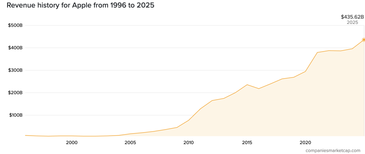 ان کے دور میں ایپل کی مارکیٹ ویلیو تقریباً 350 ارب ڈالر سے بڑھ کر 4 ٹریلین ڈالر تک پہنچ گئی، یعنی 1000 فیصد سے زائد اضافہ ہوا، جبکہ سالانہ آمدنی 2011 کے 108 ارب ڈالر سے بڑھ کر 2025 میں 416 ارب ڈالر سے تجاوز کر گئی۔