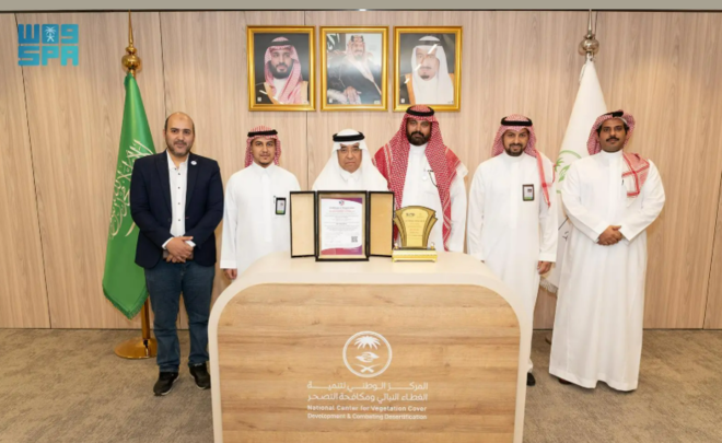 سعودی نیشنل سینٹر فارویجیٹیشن ڈیولپمنٹ اینڈ کامبیٹنگ ڈیزرٹیفیکیشن نے جنگلات کے انتظام کے شعبے میں اپنے کام اور منصوبوں کو عالمی معیارات کے مطابق نافذ کرنے پر ’آئی ایس او 9001‘ سرٹیفکیشن حاصل کی ہے۔