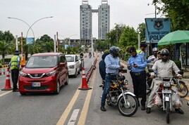19 اپریل کو جڑواں شہروں میں ہر قسم کی ٹریفک کا داخلہ بند کیا گیا تھا (فوٹو: اے ایف پی)