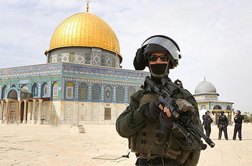 القدس - - - - - - اسرائیلی پولیس نے نمازیوں کو مسجد اقصیٰ جانے سے روک دیا۔ دسیوں یہودی آباد کار القدس پولیس کمانڈر کی مدد سے جمعرات کو مسجد اقصیٰ میں گھس گئے۔ اسرائیلی افسران اور معروف انتہا پسند یہودی مسجد اقصیٰ میں گھسنے والوں میں شامل تھے۔ پولیس نے نمازیوں کے مسجد اقصیٰ میں داخلے پر پے درپے پابندیاں لگائیں۔ شروع میں نمازیوں سے شناختی کارڈ چھینے گئے پھر 40برس سے کم عمر کے نمازیوں کو مسجد اقصیٰ جانے سے روکا گیا۔ آخر میں کسی بھی شخص کو مسجد اقصیٰ جانے کی اجازت نہیں دی گئی۔ دوسری جانب نام نہاد ہیکل سلیمانی تنظیم او روزیر زراعت اوری ارائیل نے بدھ کو اپیل کی تھی کہ یہودی باشندے زیادہ سے زیادہ تعداد میں گروپوں کی شکل میں جمعرات کو مسجد اقصیٰ پہنچیں۔ ہیکل سلیمانی تنظیم کے رضاکاروں نے مسجد اقصیٰ میں گھوم پھر کر جشن منایا۔ اس موقع پر وہاں پہلے سے موجود نمازیوں نے احتجاجاً نعرے بازی کی۔ مقبوضہ فلسطین سے موصولہ رپورٹ میں یہ بھی بتایاگیا کہ اسرائیلی فوج نے ایک فلسطینی شہری کو کریات اربع کالونی کے قریب گولیاں برسا کر ہلاک کردیا۔ دعویٰ یہ کیا گیا کہ فلسطینی مسلح تھا او رفوج پر حملہ کرنے والا تھا۔ قابض اسرائیلی افواج نے رام اللہ کے مغرب میں واقع بلعین قریہ کے 2فلسطینی لڑکوں کو زخمی کردیا جبکہ اشک آور بم برسا کر دسیوں فلسطینیوں کو تنفس کے عارضے میں مبتلا کردیا۔