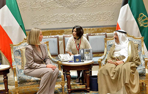 ریاض۔۔۔۔یورپی یونین میں تعلقات خارجہ امور کی سربراہ ویڈریکا موجرینی نے واضح کیا ہے کہ انسداد دہشتگردی کے علمبردار ممالک، سعودی عرب، امارت ،بحرین اور مصر قطر کے ساتھ فوری مذاکرات کریں۔انہوں نے امیر کویت شیخ صباح الاحمد الصباح سمیت کویت کے کئی عہدیداروں سے ملاقات کرکے صحافیوں سے گفتگو کرتے ہوئے کہا کہ یورپی یونین بحران کے حل کیلئے فریقین میں براہ راست مذاکرات کیلئے مطلوب تعاون کیلئے پوری طرح تیار ہے۔