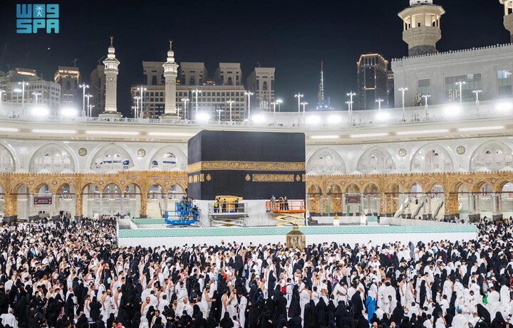 خانہ کعبہ کی دیکھ بھال کا عمل مکمل، ’کسوہ‘ کو تین میٹر اوپر اٹھا دیا گیا