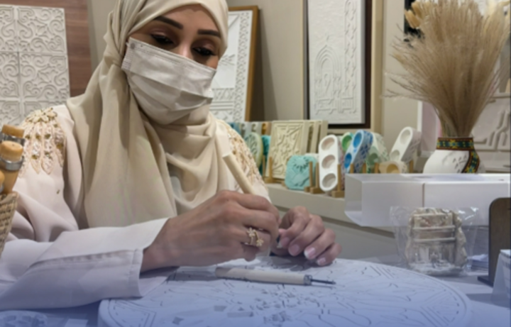 سعودی فنکارہ جو جپسم بورڈ پر مملکت کی ثقافت کو اجاگر کر رہی ہیں