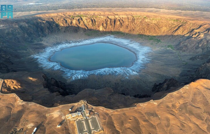 طائف کے قریب جھیل طمیہ جس کا پانی موسمی اثرات سے رنگ بدلتا ہے