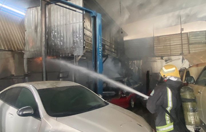 ریاض کے ورکشاپ میں آگ لگ گئی، کئی گاڑیوں کو نقصان
