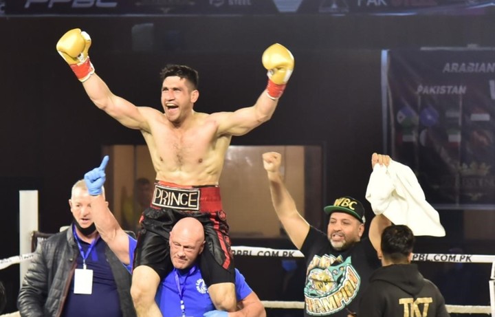 افغانستان کو شکست، عربین سی فائٹ ٹائٹل پاکستانی باکسر مظفر خان کے نام
