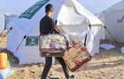 غزہ کے علاقے رفح کے پناہ گزین کیمپوں میں امدادی سامان تقسیم