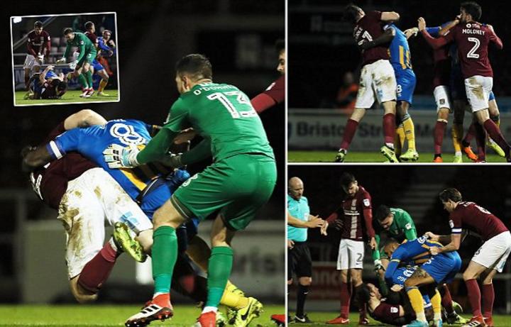 فٹبال لیگ کے میچ میں کھلاڑیوں کے درمیان جھگڑا