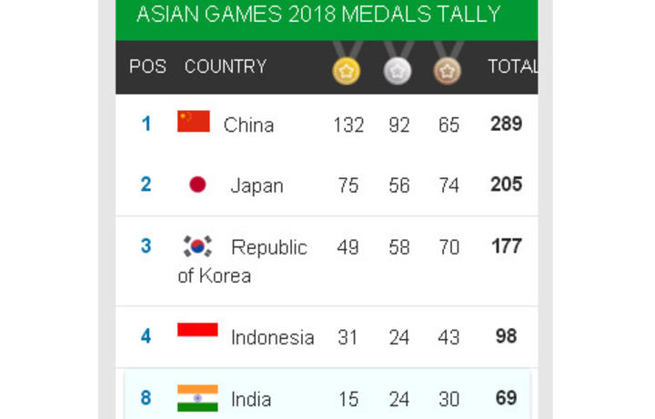 ایشین گیمز کا اختتام ،چین 289 تمغوں کے ساتھ اول