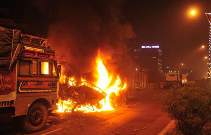 لکھنؤ:3ٹرکوں میں خوفناک تصادم،3افرادزندہ جل گئے